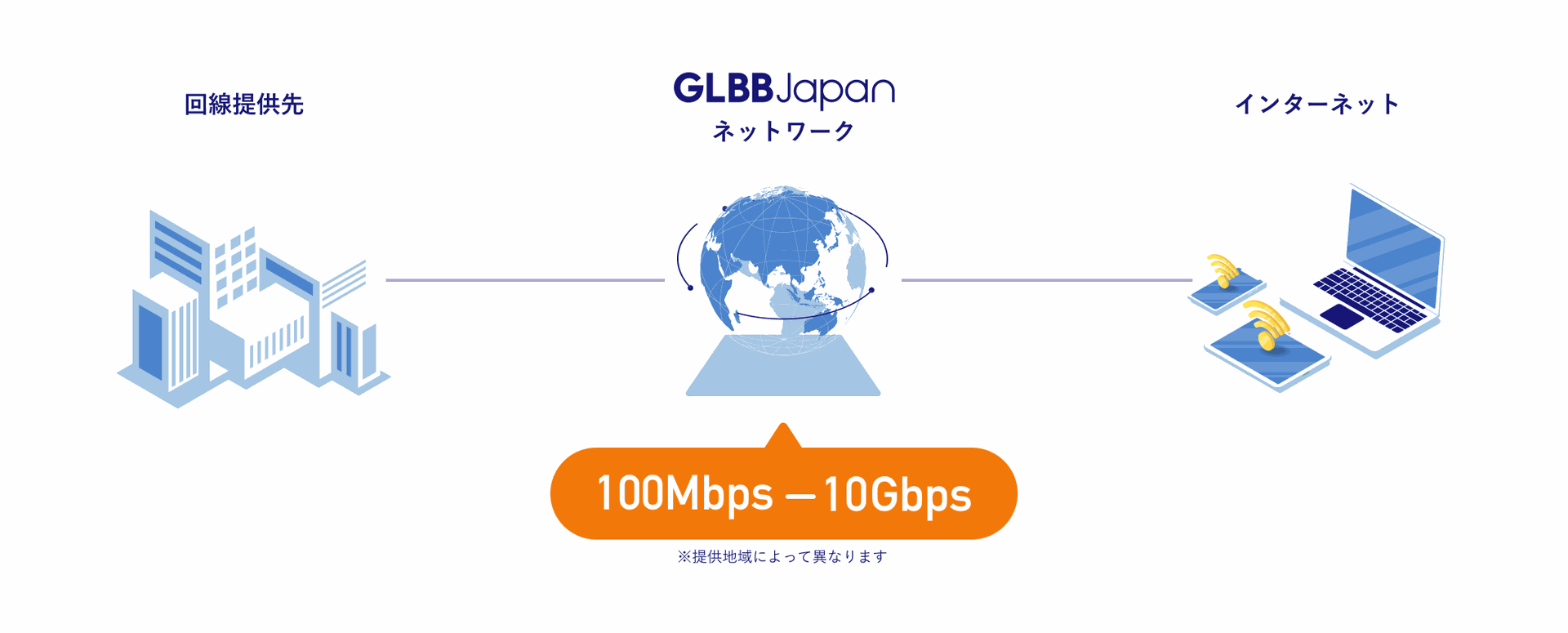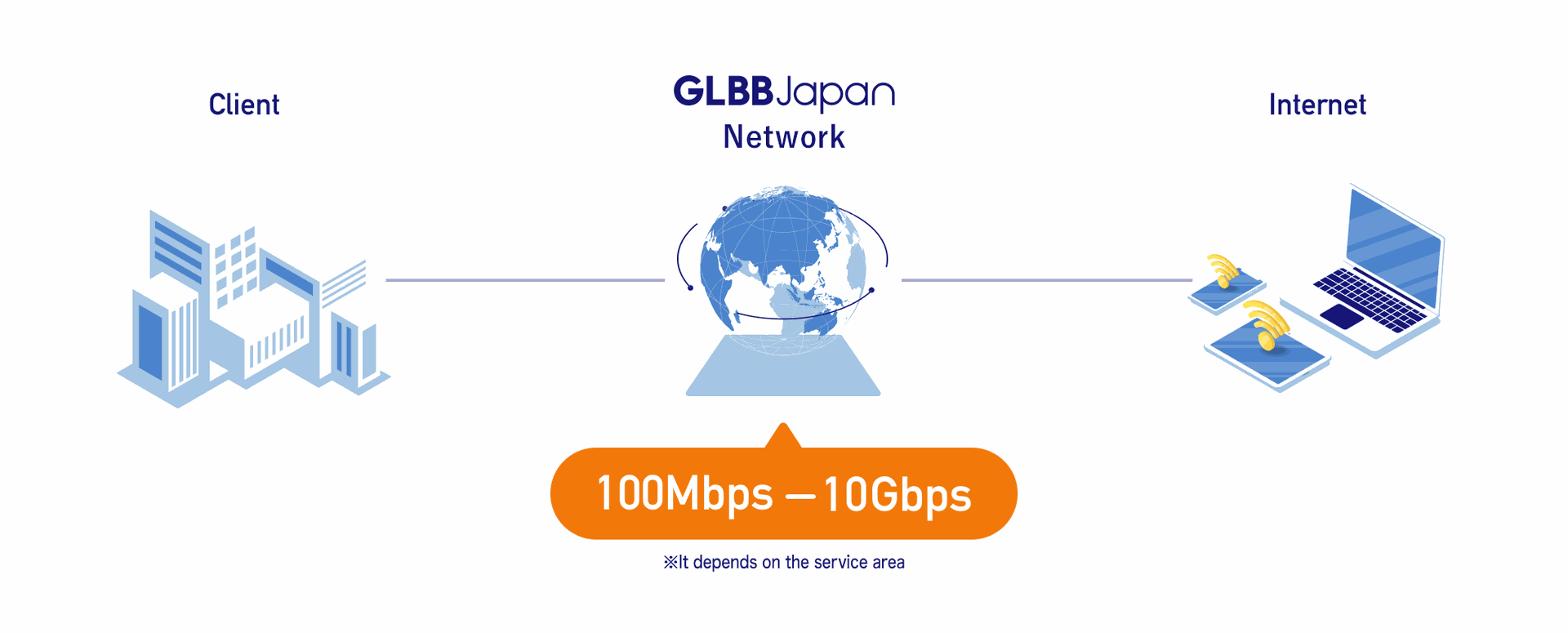 We provide a dedicated pathway from your premises to the Internet, ensuring a high-quality and stable Internet connection. Depending on your usage requirements, you can choose bandwidth ranging from 100Mbps to 10Gbps. Additionally, we offer options for bandwidth guarantees and allocation settings. Our service level agreement (SLA) is included as a standard feature, allowing usage for business purposes with confidence.