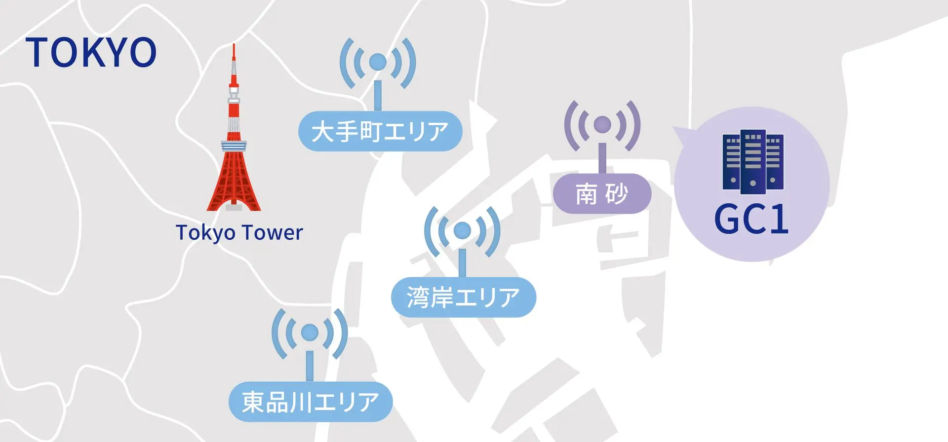 The service location is GLBB "GC1 site". Easy access from the city center, strong earthquake countermeasures, flood countermeasures, and security measures. It is equipped with a highly reliable facility equipped with adequate communication equipment and power supply equipment, such as: securing two communication line lead-in routes.