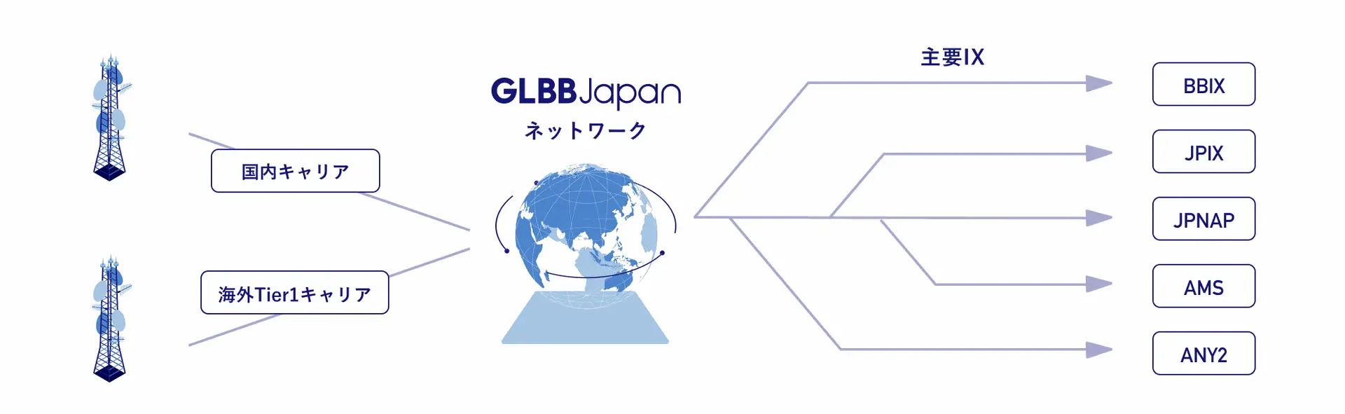 GLBB is connected to 8 major Internet Exchanges in Japan and 1 in Los Angeles.