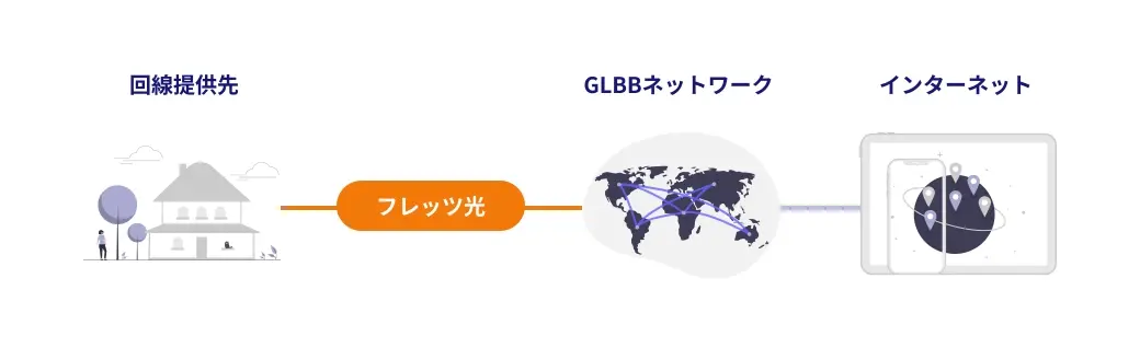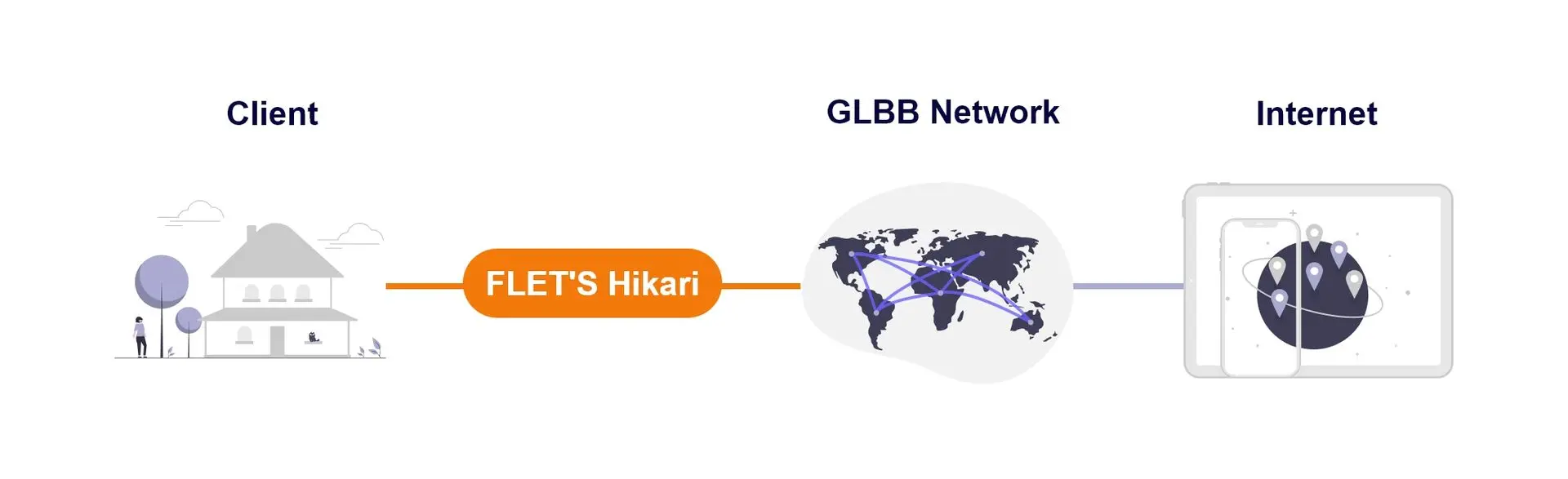 A connection service using FLETS HIKARI by NTT East/West. To counter the yearly increase in traffic, our company sets its own standard for number of connections per POIs, realizing stress-free internet connection with little delay caused by peak hours. We support both 1Gbps NTT Flets Hikari Next, as well as 10Gbps NTT Flets Hikari Cross services. An existing NTT FLETS Line is required to use the ISP or will need to apply for the GLBB HIKARI FLETS Package.
